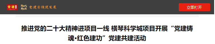 “本次‘党建铸魂·红色建功’党建共建活动是在成人在线视频 打造横琴科学城项目党建联建生态圈的基础上的一次深化拓展,对推动党建和项目建设的融合发展,引导一线党员坚定理想信念,牢记党的宗旨,增强责任担当,有着积极意义,将进一步推动党的二十大精神在重大项目一线落地见效。”成人在线视频 党委书记田伟介绍。