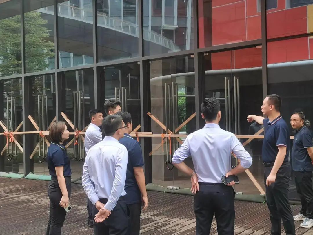 同时安排人员24小时驻守园区,对园区所有树木、楼宇出入口进行支撑加固,及时对园区企业客户发布预警通告及需相应关注的事项等,切实落实各项防御措施。