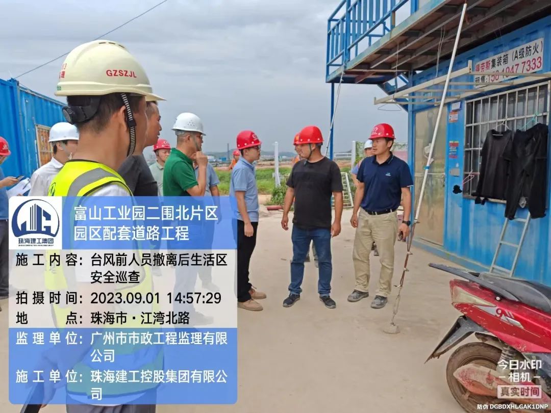 会后,集团副总经理、三防总指挥祝杰带队对横琴口岸、长隆宿舍安置点、环岛西路二期、天湖酒店等重点场所,建筑工地、转移安置点等重点区域进行检查。检查组要求各单位要再对在建工地塔吊、深基坑、高支模、工棚、临时用电等隐患及加固情况进行全面的拉网式排查,及时采取措施,补足短板,确保防台风措施落实到位,全覆盖,零死角,保证人员设备安全。
