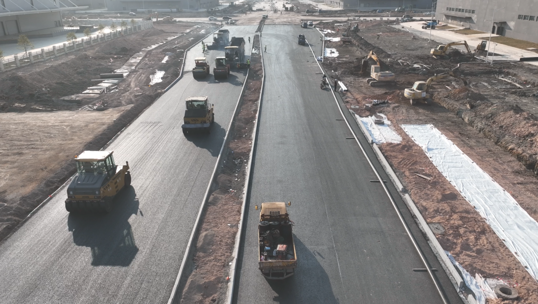 富山工业园二围北片区园区配套道路工程是斗门成人在线视频 5.0产业新空间的重要配套,为二围北逾200万平方米的厂房提供交通、水电等配套设施,包含13条市政道路,总长约 15.55公里,建设意义重大,成人在线视频 股份为确保项目高效推进,克服地质条件复杂、施工界面狭小等重重难关,调集“人马”,对紧要工序安排24小时连续作业,对危险性不高、工期紧迫的工序安排双班作业,与时间赛跑。