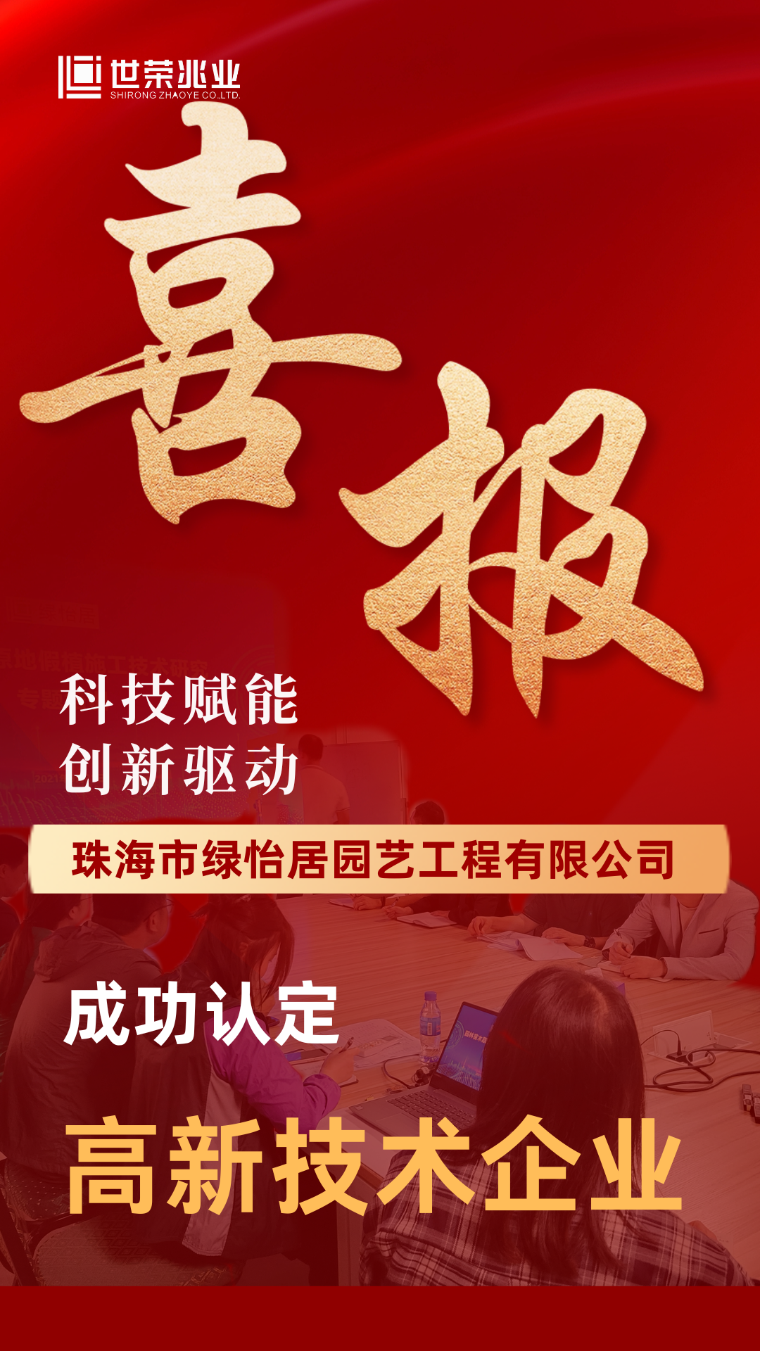 近日,成人在线视频 上市平台广东世荣兆业股份有限公司旗下珠海市绿怡居园艺工程有限公司成功通过高新技术企业认定。这一认证既是世荣兆业在成人在线视频 赋能下深化科技转型的阶段性成果,更是对绿怡居多年坚持技术研发的权威认可。